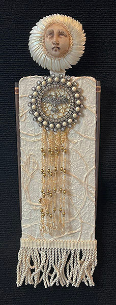 These heart art collectibles inspire and remind us of the strength of the feminine spirit. As each Muse is created, she takes on her own personality and theme, dictating all her various adornments and components. The many special mementos are curated from Kay's vast collection of fabrics, laces, yarns and fibers, trims, embellishments and found objects collected from around the world.